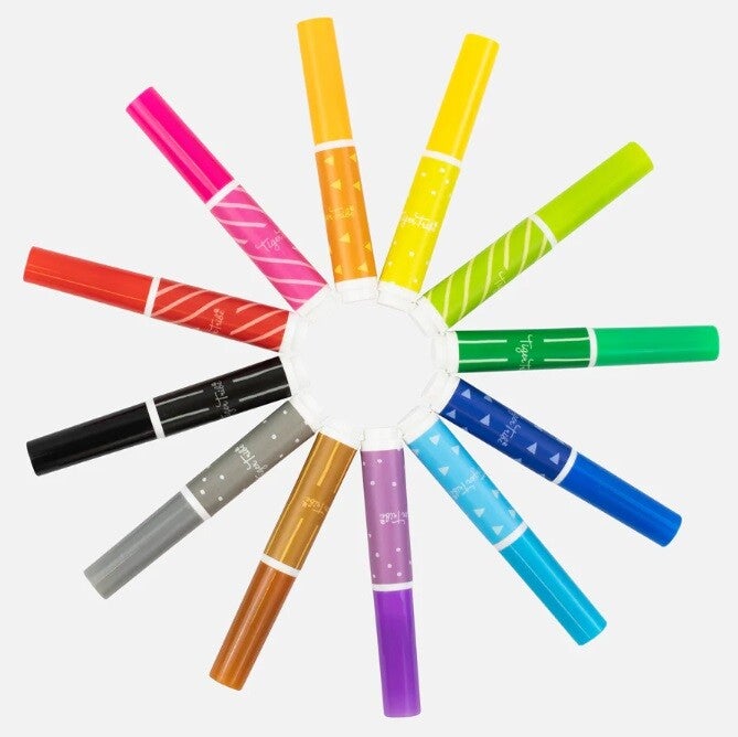 De markers zijn kindveilig. Ze zijn niet giftig en op waterbasis. Ook zijn ze uitwasbaar. Dus dat is altijd fijn voor de kleding en meubels die eventueel meegekleurd worden.