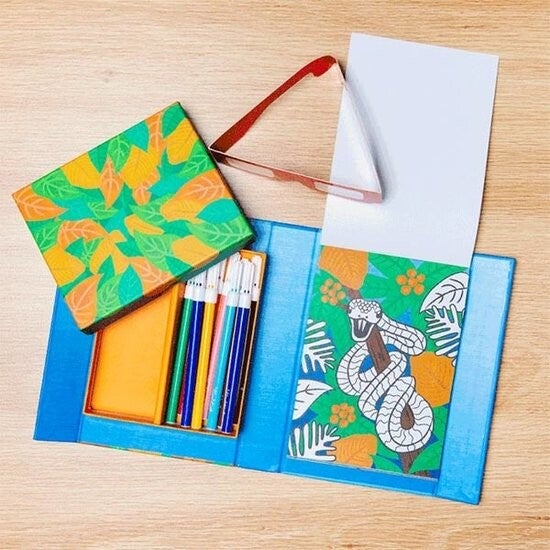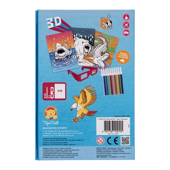 In dit stevige opbergdoosje vind je een boekje met 36 pagina's met tekeningen om in te kleuren, 10 stiften en een 3D bril. Voor urenlang teken plezier. De 3D-bril zorgt ervoor dat warme kleuren dichterbij komen en koele kleuren verder weg gaan. Experimenteer terwijl je kleurt, met zowel warme als koele kleuren om je foto's er 3D uit te laten zien.