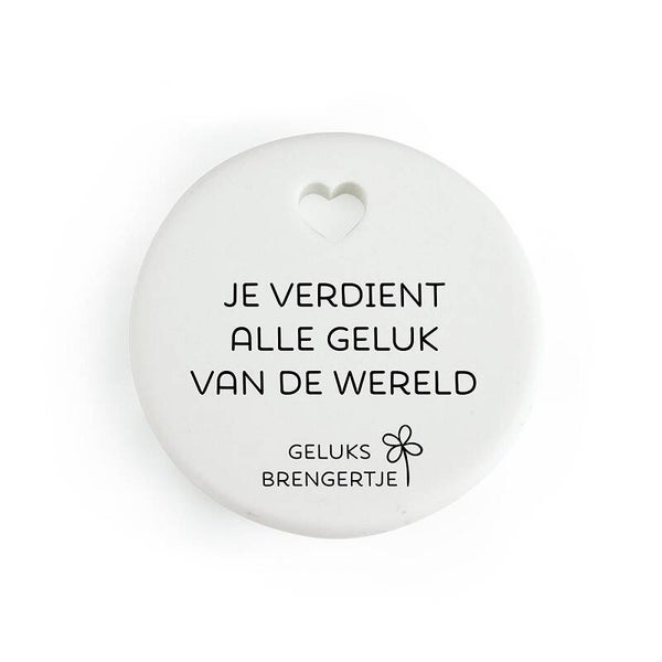 Ben jij op zoek naar een klein gebaar om iemand cadeau te geven of juist om een hart onder de riem te steken? Dan is deze mooie geluksbrenger misschien wel iets voor jou. De geluksbrenger bevat tekst op de voor en achterkant.