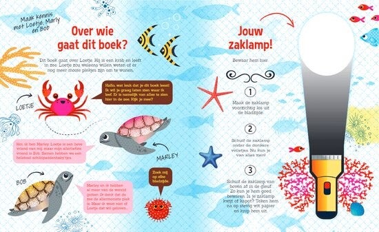 Wie kent ze niet? De populaire zaklampboeken voor kinderen. Voorin zit een kartonnen zaklamp. Je kunt met deze zaklamp opzoek gaan naar leuke weetjes en beesten in het boek. Er zitten doorzichtige pagina's tussen en hier kun je de zaklamp achter steken en zo komen de beesten of andere figuren tevoorschijn. Er staan ook leuke verhalen in om voor te lezen. Met dit voorleesboek kun je interactief aan de slag. Laat je kindje zelf op ontdekkingstocht gaan in het boek en lees samen de stukjes en weetjes die erin staan.
