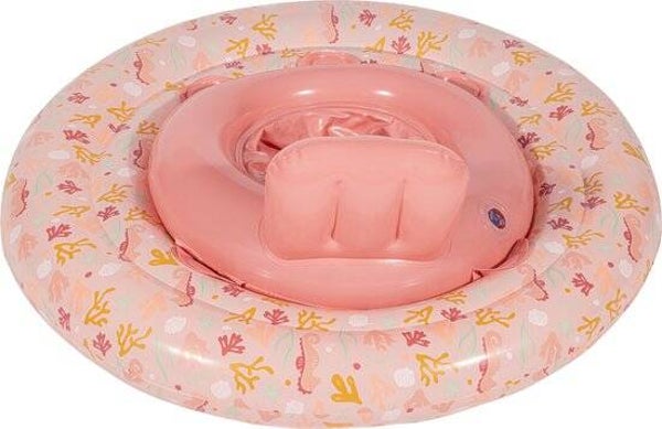 Heerlijk drijven op het water met de babyfloat 'Ocean Dreams Pink'. De roze opblaasbare babyzwemband met illustraties van figuren uit de zee heeft een zitje dat baby's ondersteunt bij hun eerste avonturen in het water. Het baby zwemzitje heeft luchtkamers. Baby's genieten stralend van het water en vallen goed op.