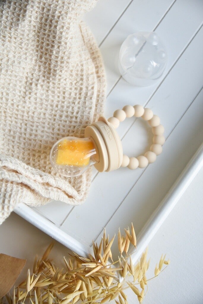 Deze bijt/voed speen kan ook worden gebruikt om tandjes te verlichten en de baby gerust te stellen door een ijsblokje bevroren moedermelk in de speen te laten glijden. Geef je geen borstvoeding dan kun je ook gewoon een ijsklontje erin doen om de pijn te verzachten bij doorkomende tandjes.