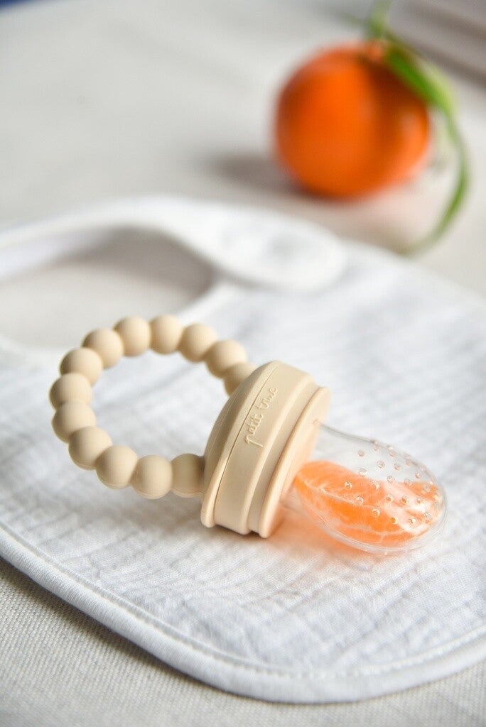 Het enige wat u hoeft te doen is voedsel in de fopspeen te doen (stukjes fruit, groenten, puree of compote) en uw kind kan dan zonder gevaar van de smaak genieten. De speen heeft 3 maten, zodat de speen langer mee kan gaan met je kindje.