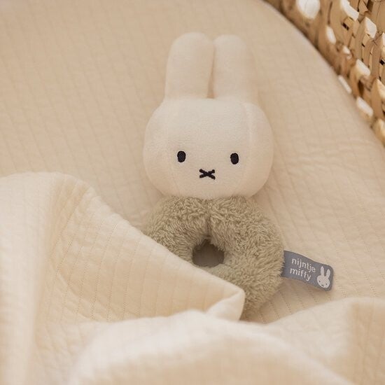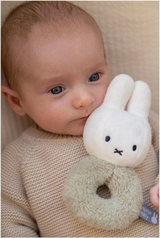 Deze leuke rammelaar is van Nijntje natuurlijk. Er zit een label aan om lekker te kunnen voelen en ontdekken.. Als je kindje met de rammelaar beweegt dan komt daar een ratelend geluid vanaf. Heerlijk lekker ontdekken met deze zachte rammelaar.