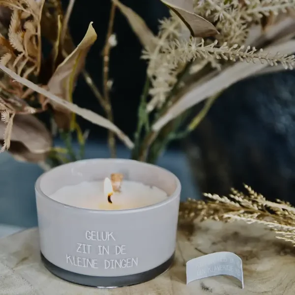 My Flame - geurkaars met flessenpost - Geluk zit in de kleine dingen