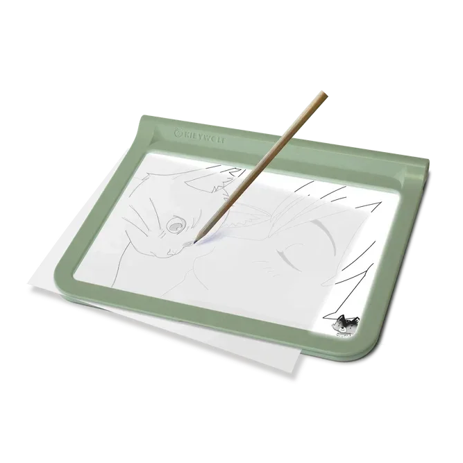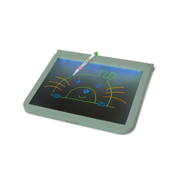Dit tekentablet heeft twee zijdes. Aan één zijde heb je een wit LED-display waar je kan tekenen en overtrekken. Aan de andere zijde heb je een zwart plexibord waarop je kan tekenen met de 4 neonmarkers die erbij geleverd zijn. Aan de zijkant van het tekentablet zit een knopje voor verlichting om het overtrekken nog makkelijker te maken.
