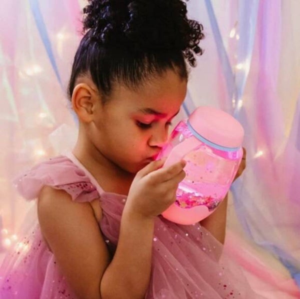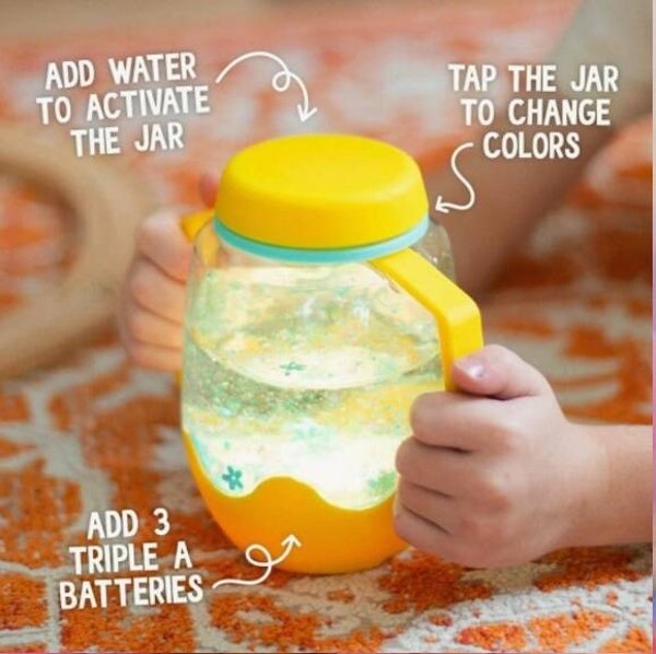 Creeër je eigen zintuigen speelbeker. Voeg er water aan toe en allerlei leuke elementen en zie hoe mooi het beweegt in de beker. Wil je extra lichtjes in de beker dan kun je de losse cubes eraan toevoegen. Wil je de kleur veranderen? Tik op de beker en het licht veranderd. De sensory play cup is niet geschikt om mee in het water te nemen. De beker mag absoluut niet in de vaatwasser. Zorg dat het batterijcompartiment droog blijft.