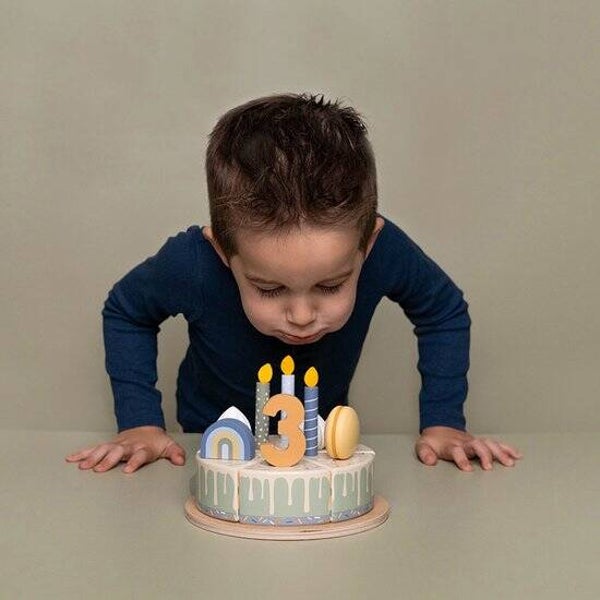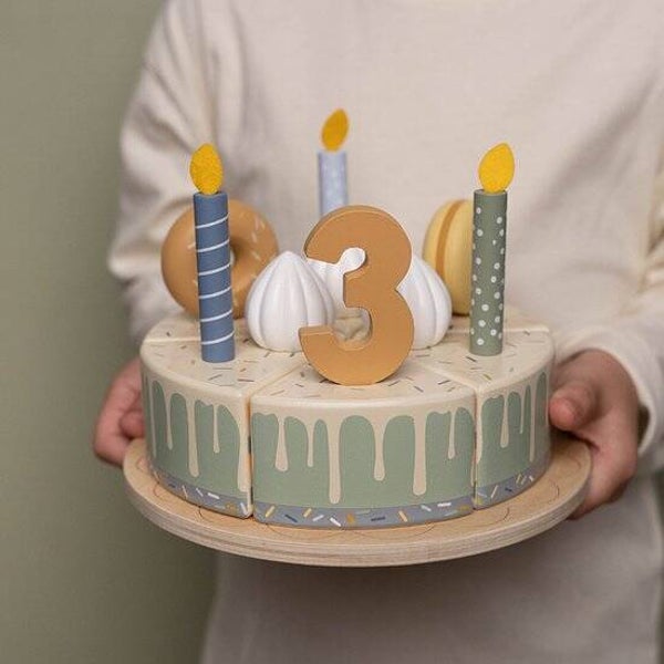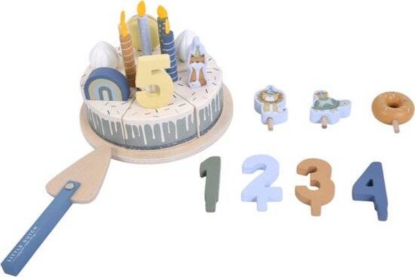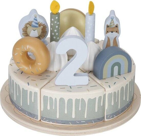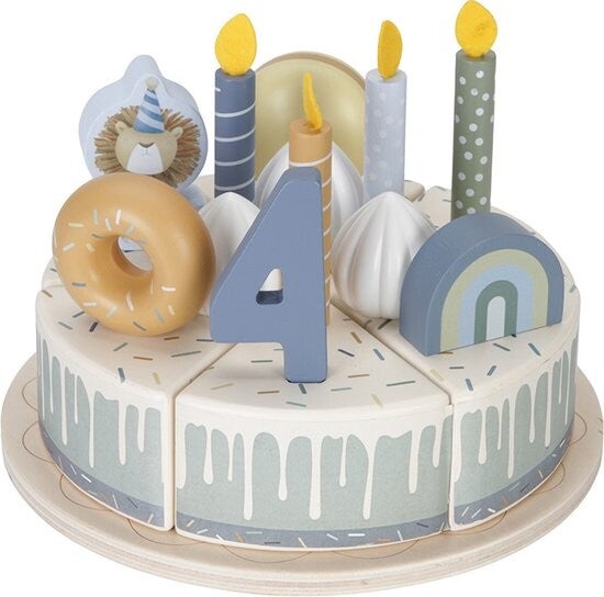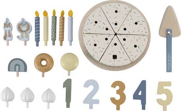 Hieperdepiep hoera! Haal de slingers maar tevoorschijn, want met onze taart is iedere dag een feestje! Versier je taart met een macaron, donut, regenboog, diertjes en slagroom en trakteer alle gasten op een stukje. Veel plezier op het feest. De set bestaat uit zes stukjes taart op een plateau, een taartschep, donut, macaron, leeuw, vos, regenboog, kaarsjes, slagroomtoefjes en cijfertoppers (1-5).