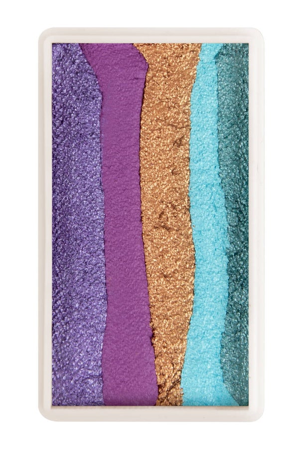 De splitcake van PartyExplosion is een combinatie van verschillende kleuren waterschmink. Een splitcake word ook wel een colorblock of rainbowcakes genoemd. Je kunt de kleuren apart gebruiken met een dun kwastje, maar je kunt ook met een brede kwast alle kleuren gebruiken. Dit noem je een one stroke techniek. De splitcakes zijn ook heel erg geschikt om daar one stroke bloemen en rozen mee te maken.