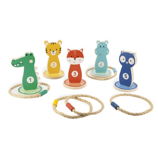 Wie kent het spel niet? Ring gooien. Zet de dieren uit elkaar en wat van je af en probeer de ringen om de dieren te gooien. Op de dieren staan cijfers. Gooi je een ring erom heen dan horen die punten daarbij. Gooi je meerdere ringen om verschillende dieren , dan kun je de punten bij elkaar optellen. Wordt het te gemakkelijk? Zet dan een stap naar achteren en probeer het dan opnieuw. Je kunt dit spel alleen spelen, maar ook samen. Gooi dan om de beurt en probeer zoveel mogelijk punten bij elkaar te gooien. Wie de meeste punten bij elkaar heeft gegooid die wint.
