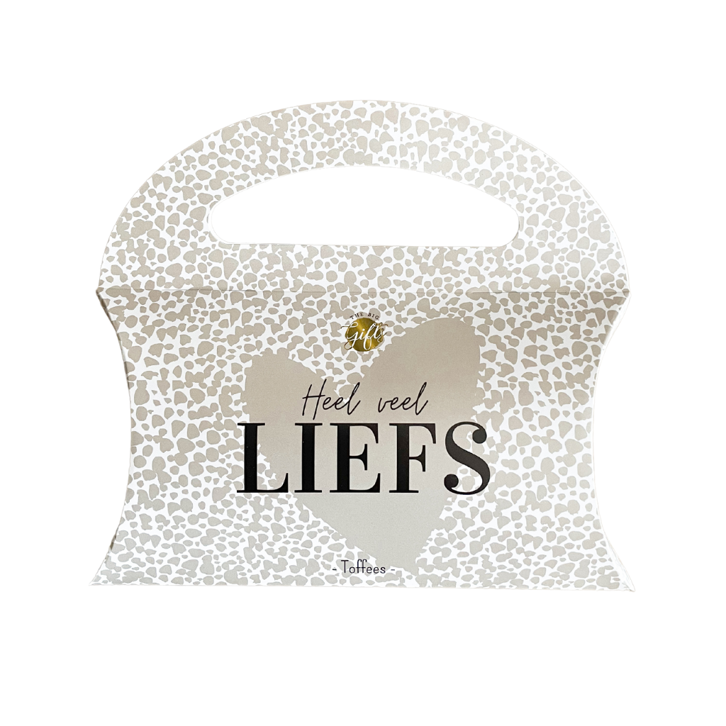 Dit schattige doosje, vormgegeven als een mini tasje met een handige hendel, is het perfecte cadeau om iemand op een zoete manier te laten weten dat je aan ze denkt. Elk tasje is zorgvuldig gevuld met 10 heerlijke toffees, verpakt in een compact formaat van 17 x 10 x 3,2 cm.
