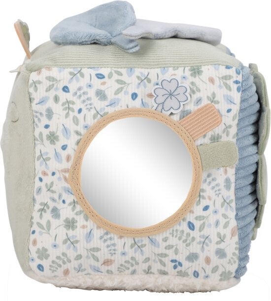 Deze superzachte activiteitenkubus in vrolijke tinten zal de nieuwsgierigheid van jouw kleintje zeker wekken. Elke zijde is voorzien van een andere activiteit met verschillende texturen en vormen die helpen bij het ontwikkelen van de zintuigen en natuurlijk voor eindeloos veel vermaak zorgen. De kubus kan vastgepakt en gedraaid worden en beschikt over een spiegeltje voor zelfontdekking.