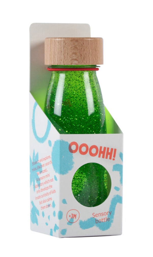 Deze sensorische fles zit vol met glitters, pompons, pailletten en sterren. Schud de fles heen en weer en volg wat er in de fles zit. Het zorgt voor rust en eigen fantasie. Om het nog een magischere ervaring te maken, gebruik hem samen met een lichtbak. Dan geeft het net nog meer magie. Het kleurengamma is geïnspireerd op de natuur.