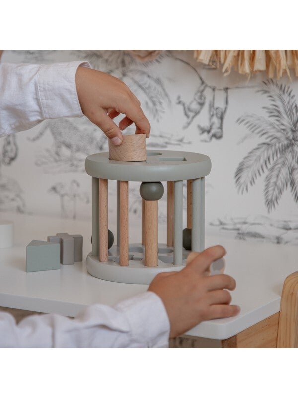 Het houten speelgoed is is uiterst geschikt voor de oog-hand coördinatie, vormen en vlakken herkennen en leren deze op de juiste wijzen te ordenen.