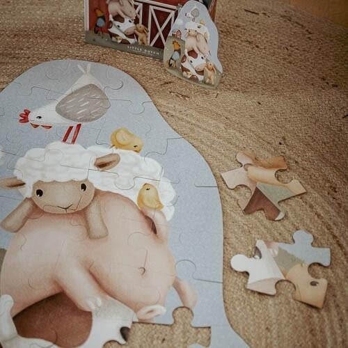 Speelplezier gegarandeerd met deze grote vloerpuzzel van Little Dutch! Kom op de grond zitten en leg alle 42 puzzelstukjes in elkaar. Zo ontstaat er een grote illustratie van diertjes die je op de boerderij vindt. Een vloerpuzzel bevordert de concentratie en hand-oogcoördinatie van je kleintje. Wat zie jij allemaal verschijnen?