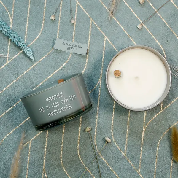 My Flame - Geurkaars met flessenpost - Momentje, Het is tijd voor een complimentje