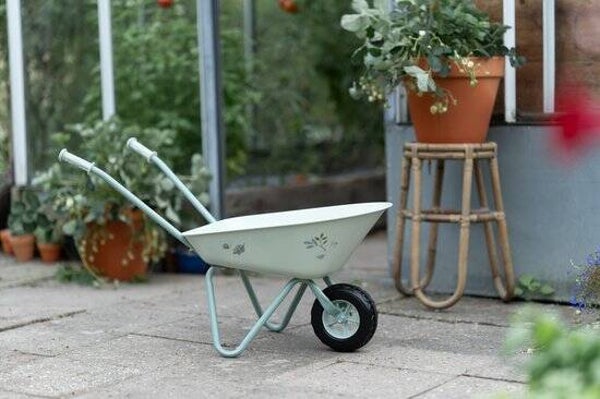 Breng plezier in de tuin met deze stevige kruiwagen! Gemaakt van metaal met plastic handvatten en een plastic wiel, biedt hij stabiliteit en gemak. De grote bak is ideaal voor het vervoeren van aarde, planten of speelgoed. Met de vrolijke kleuren en illustraties uit het Forest Friends thema voegt deze kruiwagen een speelse touch toe aan elk tuinavontuur. Perfect voor jonge tuiniers die graag actief bezig zijn!