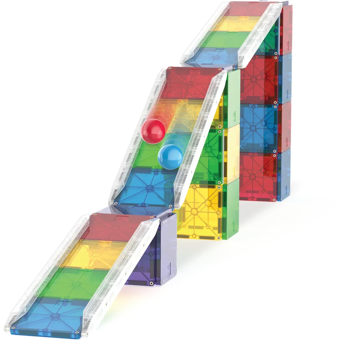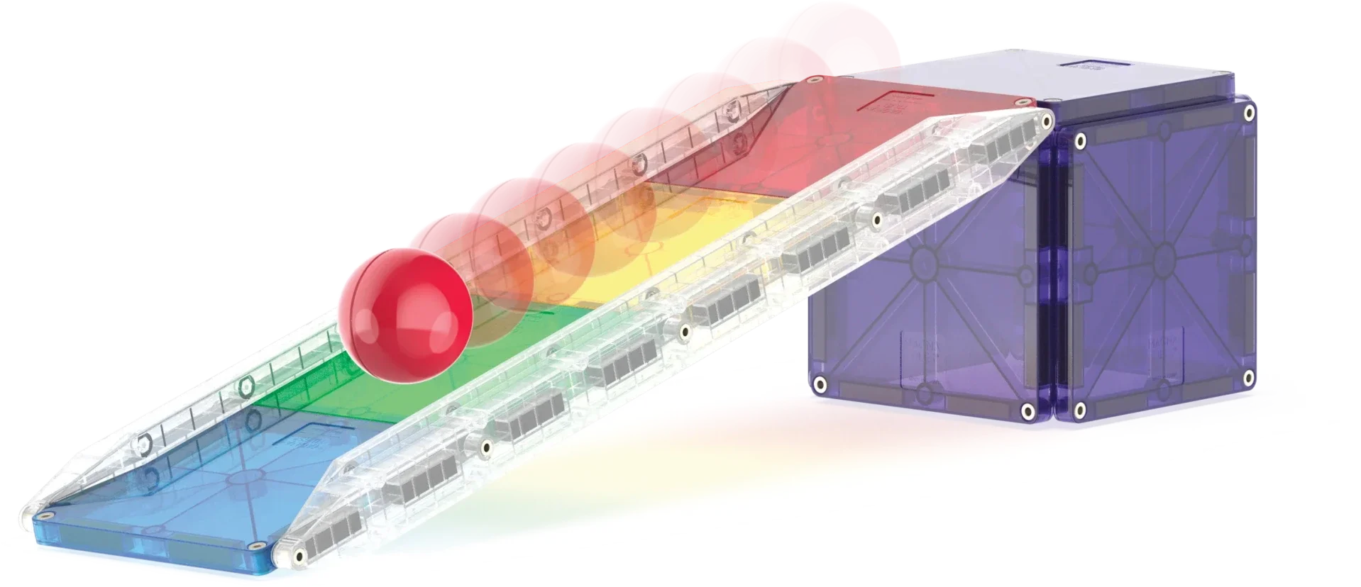 Klaar voor de start… af! Rol eindeloos door met de MAGNA-TILES Rail Racers 33-delige set! Deze actievolle set is de perfecte introductie tot bouwen en beweging, waarin magnetische magie wordt gecombineerd met creativiteit en snelheid. Met gepatenteerde Rails (in aanvraag) kunnen kinderen eenvoudig racebanen, hellingen en bruggen bouwen voor non-stop rollend speelplezier. Laat de meegeleverde bal razendsnel over jouw unieke ontwerpen racen – of het nu een rechte baan, scherpe bochten of spannende sprongen zijn – en zie hoe fantasie tot leven komt!