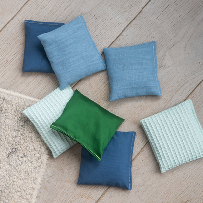 Wasvoorschriften: De sensorische pittenzakjes, gevuld met natuurlijke materialen, was je met de hand. Leg ze in een sopje en wrijf ze schoon. Niet laten weken. Spoel ze goed uit en laat ze 48 uur liggend drogen. Het wordt afgeraden om ze in de wasmachine te wassen.