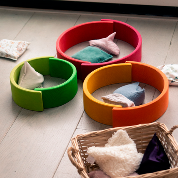 Van voelen, stapelen, gooien en sorteren tot eindeloos veel mogelijkheden in rollenspel. Een taart voor in de speelkeuken, een bedje voor kleine poppetjes of stapstenen als de 'vloer lava is'. Dit speelgoed is geweldig voor kinderen van 0,5 tot 9 jaar oud.