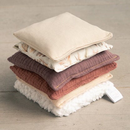 De pittenzakjes zijn gevuld met natuurlijke materialen, namelijk kersenpitten, druivenpitten en een mix daarvan. Door de verschillende stoffen én vullingen voelt ieder pittenzakje anders aan voor een extra sensorische ervaring.