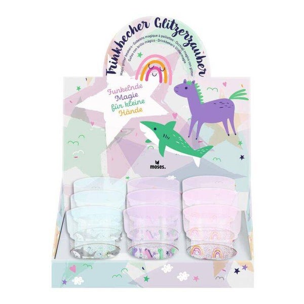 Een kunststof drinkbeker, dubbelwandig en voorzien van glitters waardoor het extra speciaal is om uit te drinken. Ideaal voor de kleine handjes. Merk: MosesInhoud: 260 mlLeeftijd: 2+