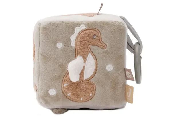 Onze zachte activiteitenkubus voor baby's, met ons betoverende Deep Sea thema, biedt eindeloos vermaak voor je kleintje. Deze veelzijdige kubus is ontworpen met knisperende walvisvinnetjes, blinkende spiegeltjes en koordjes om heerlijk aan te friemelen. Dompel je kleintje onder in de magische wereld van de oceaan, met figuren zoals een zeesterretje, een walvisje, een zeepaardje en een glinsterende parel. Al deze leuke elementen zijn vormgegeven in trendy kleuren zoals Olive Green, Nougat en Biscuit, waardoor de kubus niet alleen stimulerend, maar ook stijlvol is. Laat je baby genieten van urenlang speelplezier en ontdekking met onze Deep Sea activiteitenkubus.