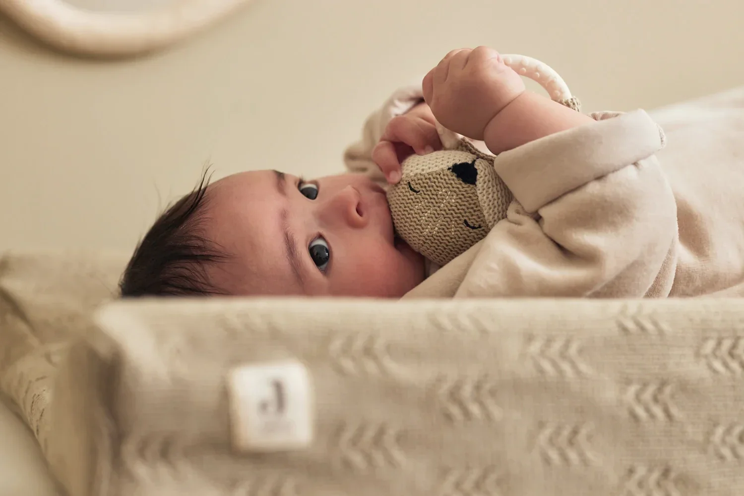 Jouw kindje ook zo'n last van doorkomende tandjes? Een bijtring zorgt voor verlichting en deze leukerd is ook nog eens leuk om mee te spelen, want in het gebreide hoofdje zitten subtiele belletjes. Tip: ook leuk als kraamcadeautje!