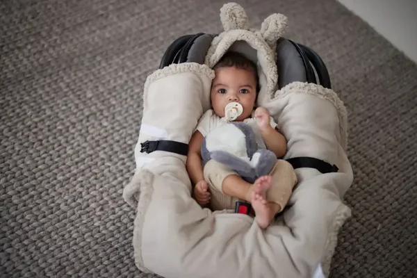 Wikkeldeken met gegarandeerd mega hoge cutenessfactor. De stof is van fluffly vachtlook aan de buitenkant en heerlijk comfortabel zacht aan de binnenkant. Wikkel je baby in deze omslagdoek en sluit de deken met de praktische klittenbandstroken. Zet het mutsje erbij op en zie daar, die schattige oortjes en dito konijnengezichtje op het mutsje. Echt te lief! Deze omslagdoek is te gebruiken vanaf de geboorte. En ook heel handig te gebruiken in baby’s eerste autostoel.