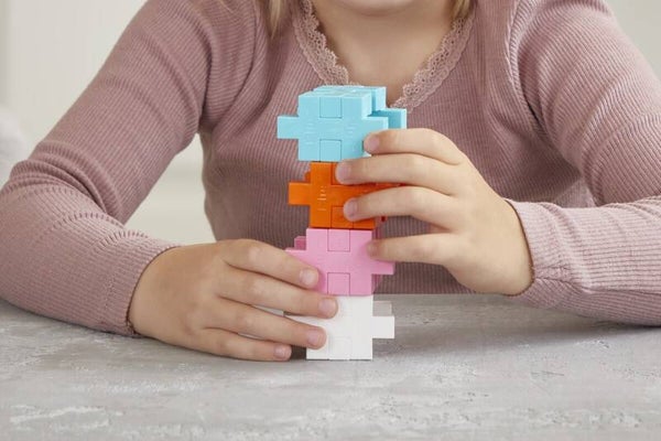 Bouwen met Plus-Plus bevordert de fijne motoriek, probleemoplossend denken en creativiteit.
