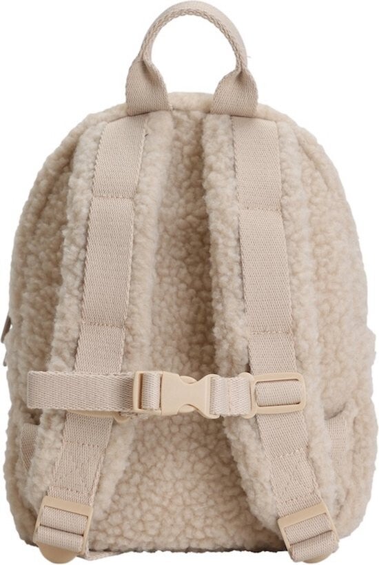 Ga samen op pad met dit zachte teddy rugzakje in de kleur sand. Perfect voor kleine avonturiers om hun spulletjes mee te nemen. Deze kinderrugzak combineert comfort en stijl, met verstelbare bandjes en voldoende ruimte voor alles wat je kleintje nodig heeft. In de tas zitten twee elastische banden om drinkbekers rechtop te houden, zodat ze niet lekken. Daarnaast heeft de tas een label waarop je de naam van je kindje kunt noteren. Ideaal voor iedere ontdekkingstocht!