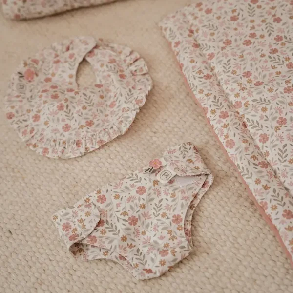 Met deze stijlvolle verzorgingstas ben je altijd voorbereid op elk poppenavontuur! De luiertas bevat alles wat je nodig hebt voor de verzorging van je pop: een zachte luier, een comfortabel aankleedkussen en een schattig slabbetje, allemaal uitgevoerd in het lieve Soft Flowers-dessin. De tas is licht van gewicht en makkelijk mee te nemen, zodat je onderweg altijd goed voorbereid bent. Ideaal voor rollenspel en het nabootsen van echte zorgmomenten!