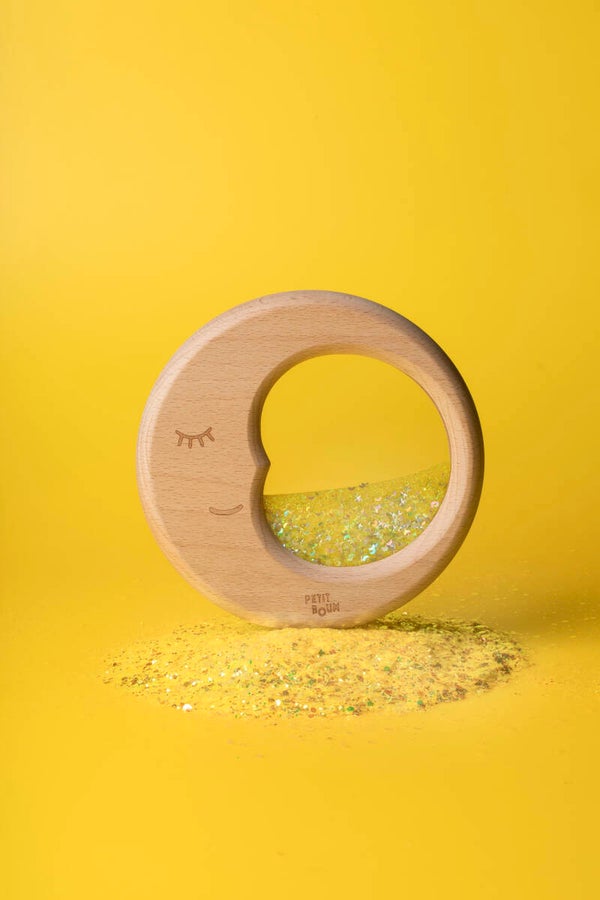 Zoete dromen. Onze Sensory Moon is een uitnodiging om te dagdromen en te knuffelen tussen zijn zoete lichtgevende sprankelingen. Gemaakt van natuurlijk beukenhout, binnenin zitten geagiteerde pigmenten die de aandacht van de kleintjes trekken, waardoor ze oogbewegingen kunnen oefenen en in een staat van kalmte kunnen komen. Onze Sensory Moon gloeit in het donker: laad hem gewoon van tevoren op in een bron van natuurlijk licht of blacklight.