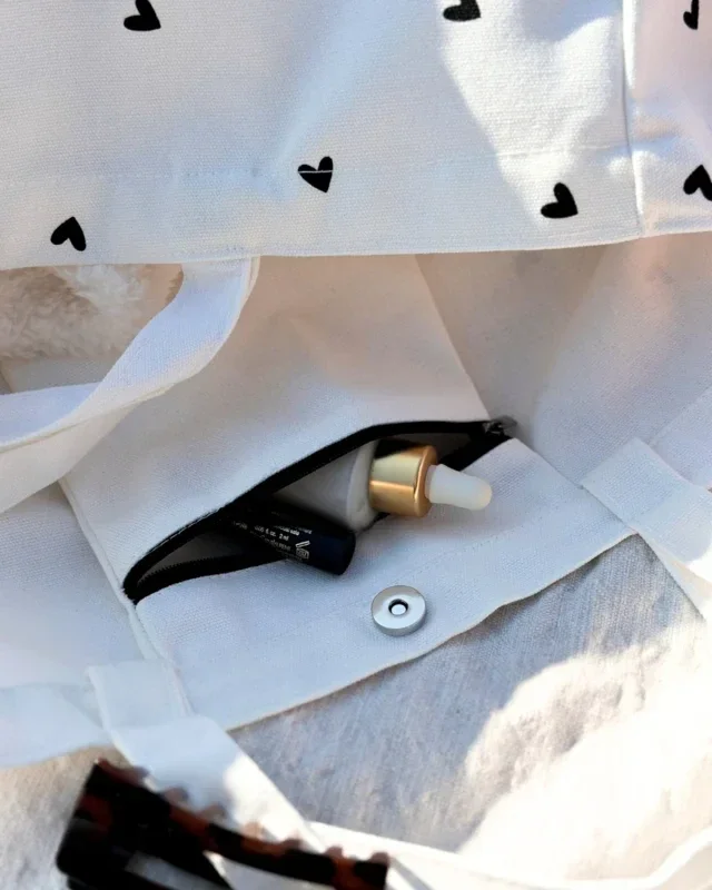 De tas is voorzien van een mooie hartjesprint en aan de binnenzijde van de tas zit nog een vakje voor je telefoon, sleutels of andere belangrijke spulletjes. Het binnenvakje (16 x 19 CM) is voorzien van een rits en de tas zelf is voorzien van een magneetsluiting. Neem je de tas mee naar het strand? Dan is de magneetsluiting wellicht overbodig, want in deze tas stop je met gemak een badlaken, zelfs wel twee of drie. De tas is namelijk extra groot, namelijk 50 x 39 x 21 CM. De tas is voorzien van twee hengsels, een kleine om de tas in de hand te dragen en een grote om de tas over je schouder te dragen.