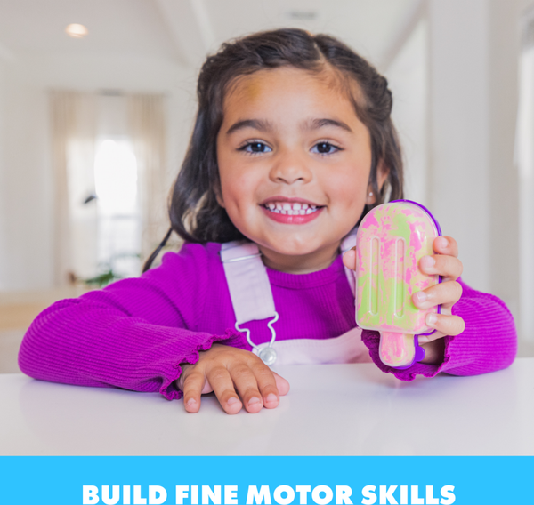 Deze vormpjes zijn gevuld met twee kleuren zand. De vormpjes zijn herbruikbaar en kun je aflsuiten, zodat het je zand goed kan opbergen. Het zand is magisch en is makkelijk kneedbaar. Het blijft goed aan elkaar plakken en hierdoor heb je bijna geen 'rommel' in huis. Het zand stimuleert de fijne motoriek en het prikkelt de verbeelding en de creativiteit.