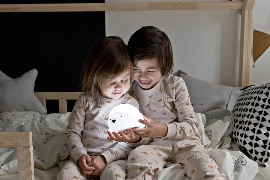 Deze Björn Projector zal je kamer in een magische wereld veranderen. Je kleintje kan vredig in slaap vallen als hij kijkt naar björn en de projectie op het plafond. De projector is ook een nachtlampje met sterretjes over zijn hele lichaam. Op de projector zitten zes verschillende lichtopties. Wit, blauw, geel, alle kleuren, vervagen tussen de kleuren en alle kleuren aan/uit vervagen. Daarnaast is het mogelijk te kiezen tussen drie felheidsopties. De projector is oplaadbaar en heeft een optionele timer van 30 minuten.