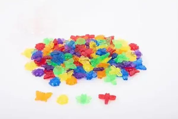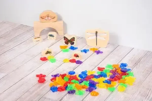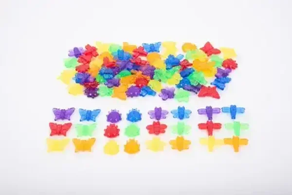 Kom dichter bij de natuur met onze tickit Translucent Color Bugs. Kleurrijk en gedetailleerd, onze insectenvormen zijn ideaal voor tellen, sorteren, patronen maken of plezier maken met wiskundeactiviteiten. Uw kind kan vlinders, lieveheersbeestjes, libellen of bijen optellen, aftrekken, delen of vermenigvuldigen. De doorschijnende eigenschappen maken ze ideaal voor gebruik met een lichtpaneel om de verbeelding van uw kind te prikkelen en kleuren en de voelbare markeringen op elke vorm te verkennen.