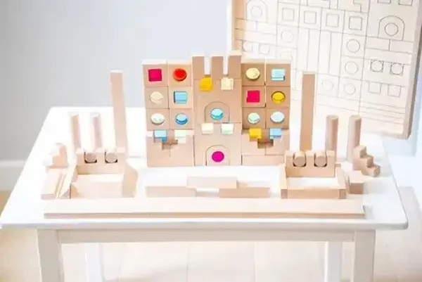 De blokken zijn zorgvuldig ontworpen om open en gevarieerd van stijl te zijn, om creatief bouwen voor oudere kinderen aan te moedigen of als een eenvoudige stapel-, balanceer- en kleurspeelactiviteit voor jongere kinderen. De caleidoscoopblokken zijn fascinerend om doorheen te kijken, en samen met de edelsteencirkels en edelsteenkubussen kunnen ze in fantasierijk spel worden gebruikt om ramen, deuren of kleurrijke decoraties te maken.