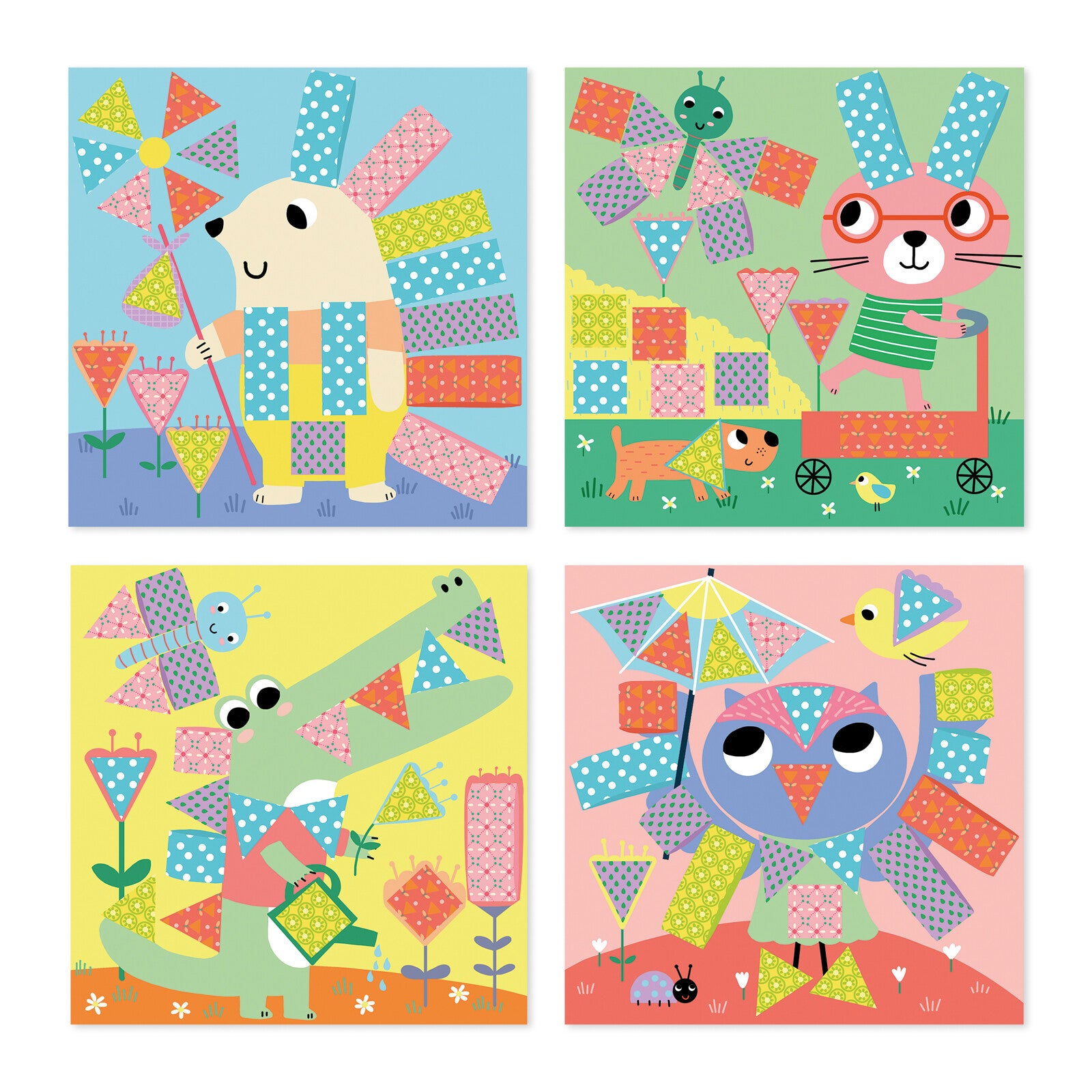 Knippen en lijmen is superleuk en traint de fijne motoriek van kinderen vanaf 4 jaar! In deze creatieve doos zit alles wat je nodig hebt om 4 foto’s te maken om te versieren met patroonpapier dat de kleintjes moeten uitknippen en op de juiste plek plakken! De doos verandert in een schildersezel om mooie creaties in uit te stallen. Een schaar aangepast aan de allerkleinsten en 5 vellen patroonpapier laten de minikunstenaars hun creativiteit de vrije loop. Deze activiteit is heel eenvoudig: knip de voorgetekende vormen uit de vellen papier en rangschik ze op de juiste plaats met behulp van de meegeleverde lijmstift. Kinderen kunnen het meegeleverde instructieboekje volgen.