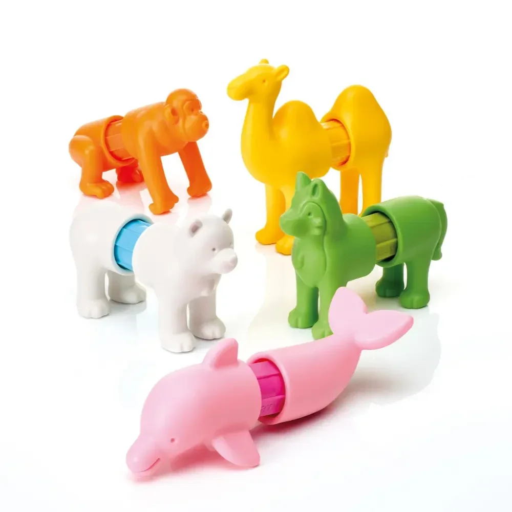Jonge kinderen (+12 maanden) kunnen op een veilige manier de magie van het magnetisme ontdekken met de “My First” collectie van SmartMax. De extra grote, zachte onderdelen van de dieren klikken eenvoudig op de staven. Maak 6 verschillende Safari dieren of combineer naar keuze om de gekste dieren te crëeren.