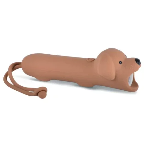 Honden-vormige zaklamp, bedekt met zacht siliconen, is de perfecte combinatie van functionaliteit en plezier. Dankzij de handige helderheidsregeling is hij ideaal voor avondavonturen, schaduwspel of verhaaltjes voor het slapengaan. Oplaadbaar via een USB-C-kabel, biedt hij comfort en lange gebruiksuren. De hanger maakt het eenvoudig om de zaklamp op te hangen waar hij nodig is. De zaklamp heeft twee verschillende lichtstanden.