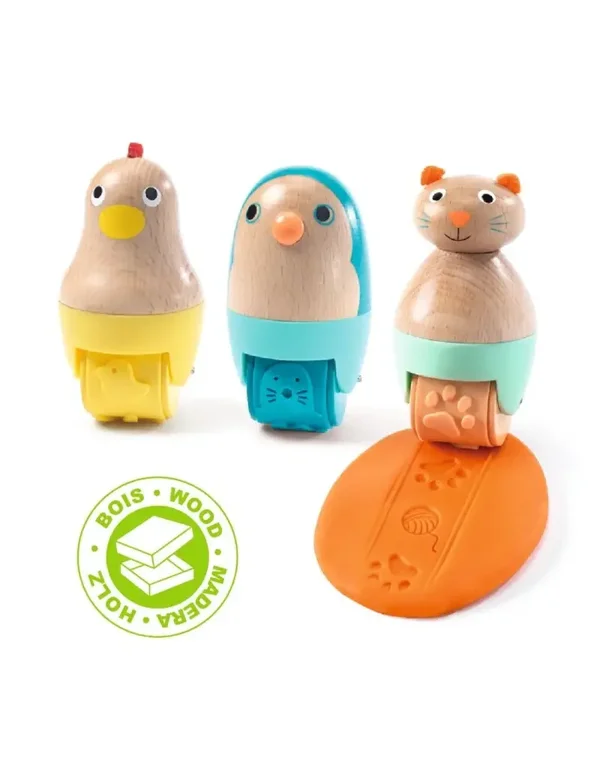Drie dierenrollen die grappige sporen in de klei achterlaten! Ergonomisch ontworpen, gemakkelijk vast te pakken voor kleine handjes.Merk: DjecoLeeftijd: 18m+Inhoud: 3 dierenrollen voor boetseerklei