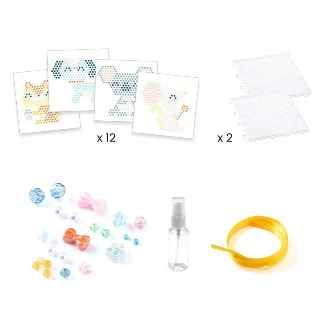 Een maxiset met meer dan 2300 waterkralen om 12 modellen van zachte diertjes te maken: 6 kleine, 2 middelgrote en 4 grote, met 3 moeilijkheidsgraden. Met 2 meegeleverde platen zodat je je werkjes kunt afwisselen, en heel veel lintjes en hangers om je creaties in geluksbrengers om te toveren die je overal kunt ophangen!