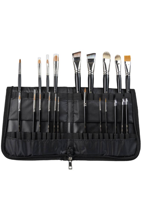Deze penselen etui is uitermate geschikt voor all PXP penselen en kabuki's. De bovenste rij is geschikt voor grotere penselen. De onderste laag heeft plaats voor 22 penselen en de bovenste laag heeft plaats voor 12 grotere penselen. Met een plastic beschermlaag die tevens als vakje voor sjablonen kan worden gebruikt. Voorzien van ventilatie gaatjes zodat het vocht altijd uit het etui kan verdampen. Voorop zit een venstertje waarin enkele visite kaartjes bewaard kunnen worden.