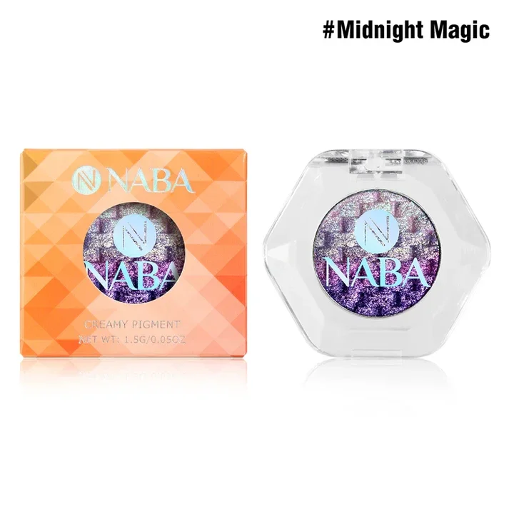 Ultra-gepigmenteerde, romige cameleon en holografisch regenboog pigmenten. De oogschaduw glijdt als boter. Je hebt geen lijm nodig. De beste manier om het aan te brengen is met je vingers.