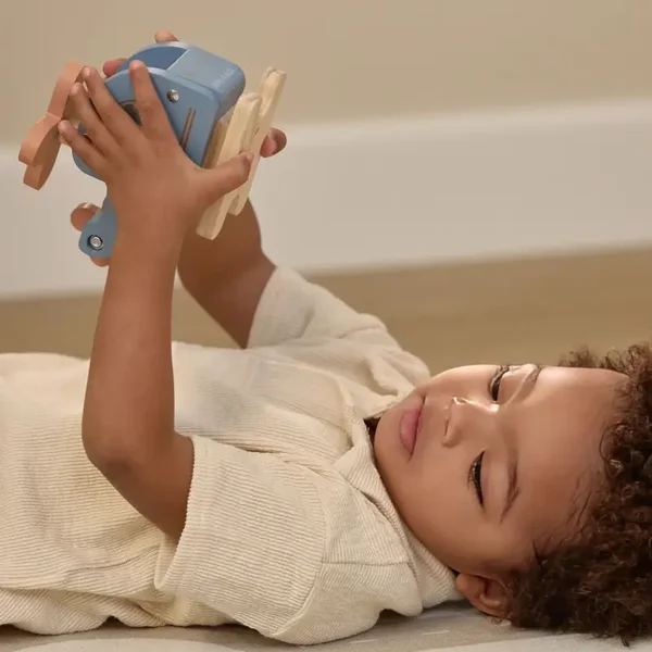 Vlieg samen op avontuur met deze houten helikopter in zachte blauwe tinten. De beweegbare propellers en houten piloot nodigen uit tot eindeloos fantasiespel. Gemaakt van stevig hout en perfect te combineren met andere voertuigen voor nog meer speelplezier.