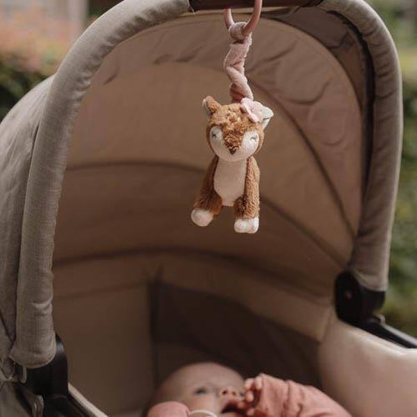 Laat dit lieve hertje schudden en bewegen. Als je aan het knuffelbare hertje trekt dan begint ze te trillen. Dit leuke speeltje bevestig je eenvoudig aan een autostoeltje, een box of een kinderwagen voor uren plezier, thuis of onderweg. Gemaakt voor kleine handjes om vast te pakken, zorgt het voor een hoop gelach en gegiechel.