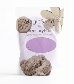 Het MagicSand van SensoryFun is HET natuurlijke magische zand wat niet uit droogt, niet plakt, makkelijk te kneden is en waar je mee kan bouwen. het voelt zo heerlijk zacht dat ook de volwassene er niet van af kunnen blijven.