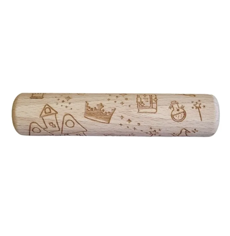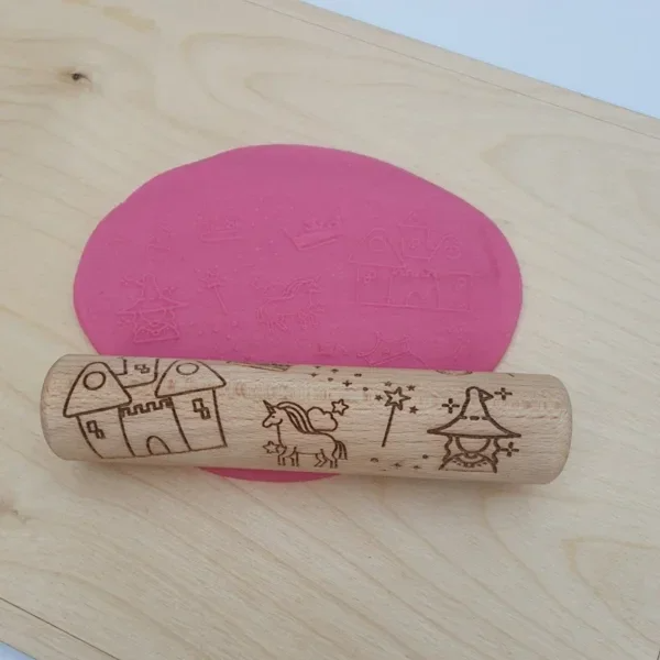 Elke roller is uniek met zijn eigen print en zorgt voor uren speelplezier. Deze roller maakt een prachtig sprookjes thema op het klei. De rollers zijn geschikt voor Speelklei/kinetisch zand om in te rollen en zijn een toffe aanvulling op de houten stempels.