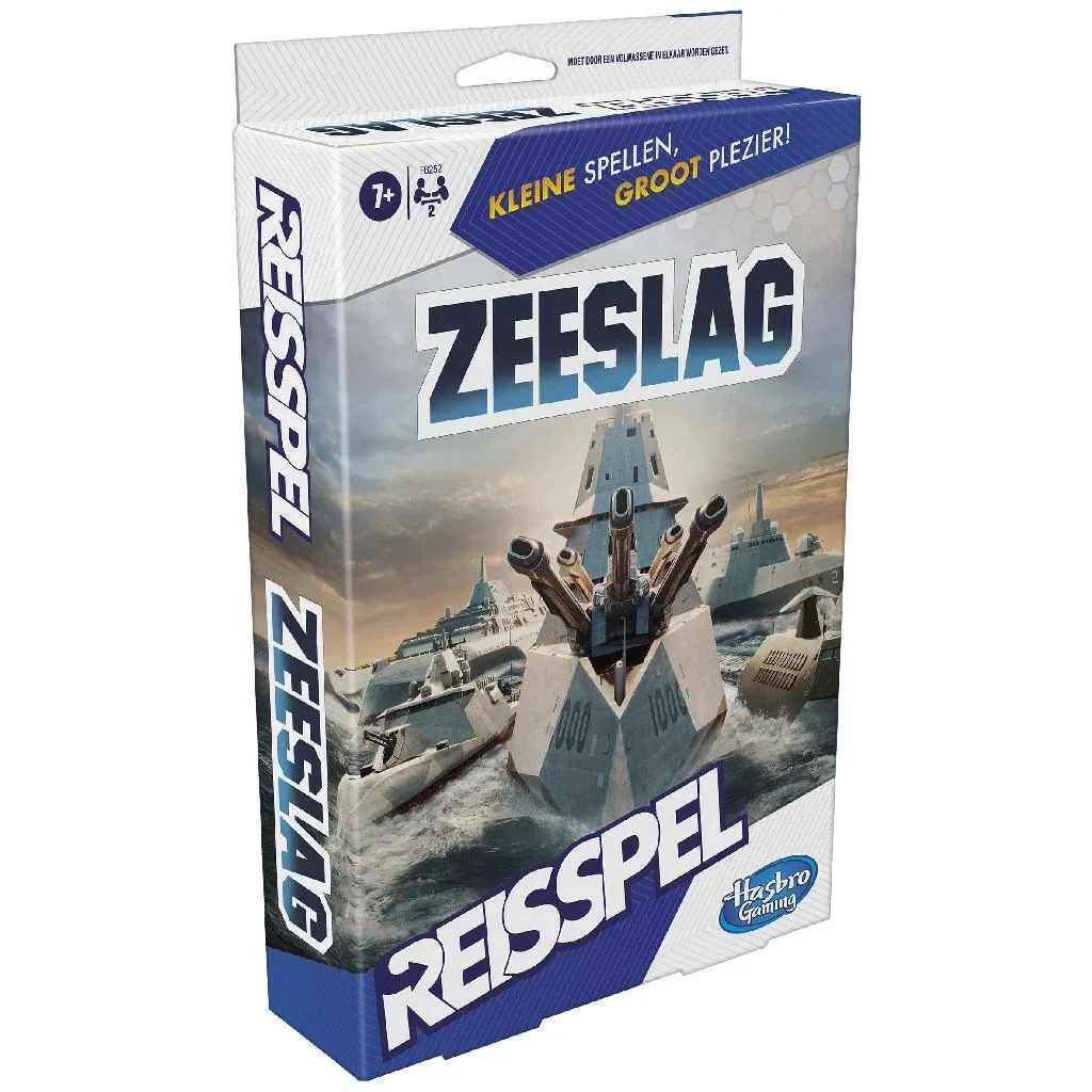"Leid je vloot ook onderweg naar de overwinning met dit compacte Zeeslag reisspel. Kun jij de vloot van je tegenstander tot zinken brengen voordat hij de jouwe naar de haaien stuurt? Jij bepaalt de strijd met je handige spelcassette. Plaats je vliegdekschip, slagschip, kruiser, onderzeeër en mijnenveger op het oceaanraster. Als de strijd voorbij is, berg je de pinnetjes en de schepen op in de cassettes en je schuift ze in elkaar. Plan je strategie en leid je troepen naar de overwinning! Het Zeeslag reisspel is een compacte versie van het bekende spel. De geopende spelcassette zorgt dat je tegenstander niets kan zien. Markeer je schoten met de rode en witte pinnetjes.